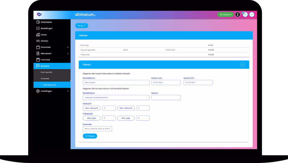Het mooie is dat deze SMS functie volledig is geïntegreerd in ons systeem. Dat betekent dat je geen aparte tools nodig hebt; alles gebeurt vanuit één centrale plek.