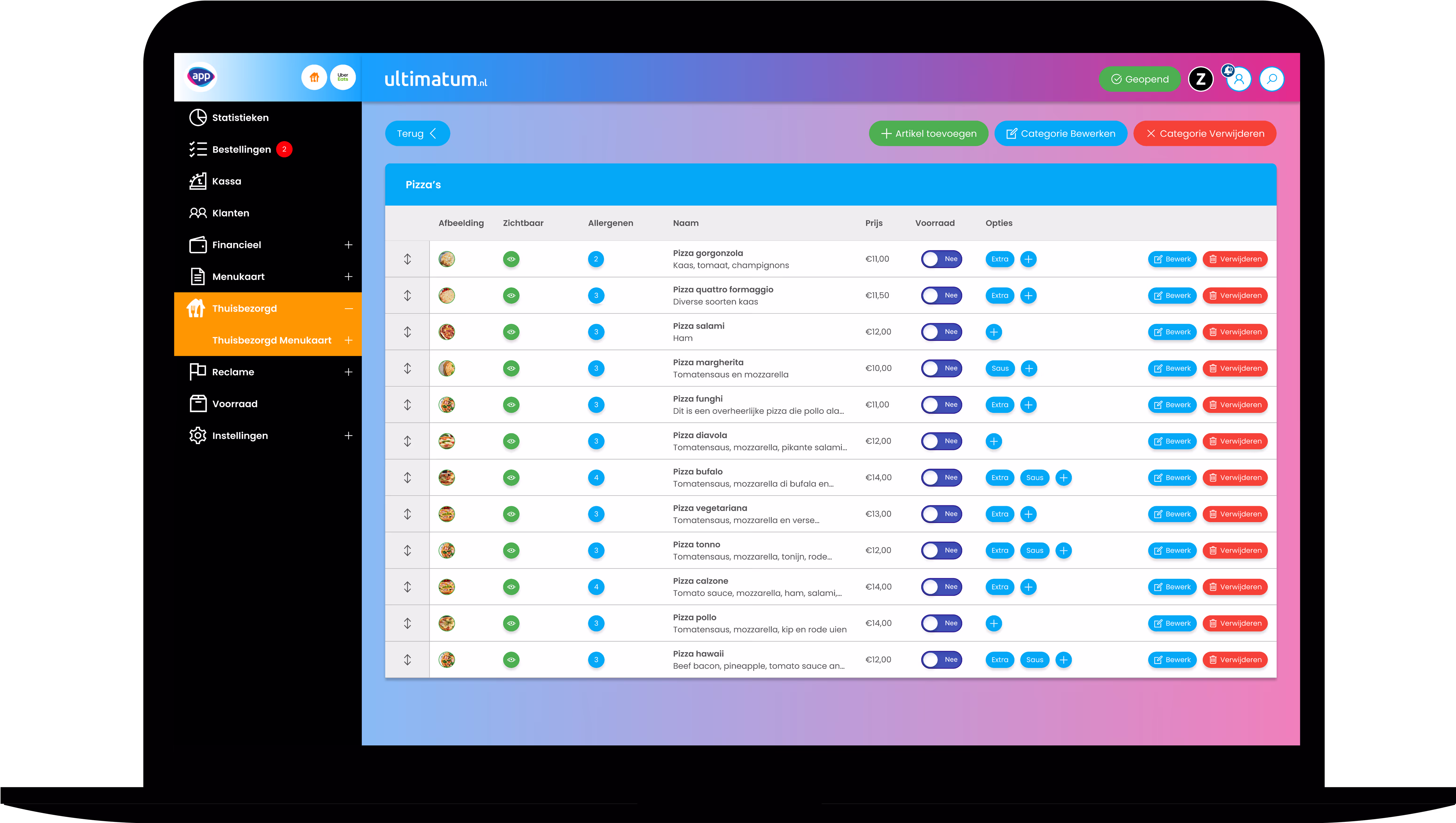Dus, als je je restaurant naar een hoger niveau wilt tillen en wilt profiteren van extra verkoopkanalen, dan is onze koppeling met Thuisbezorgd.nl en Uber Eats een no-brainer.